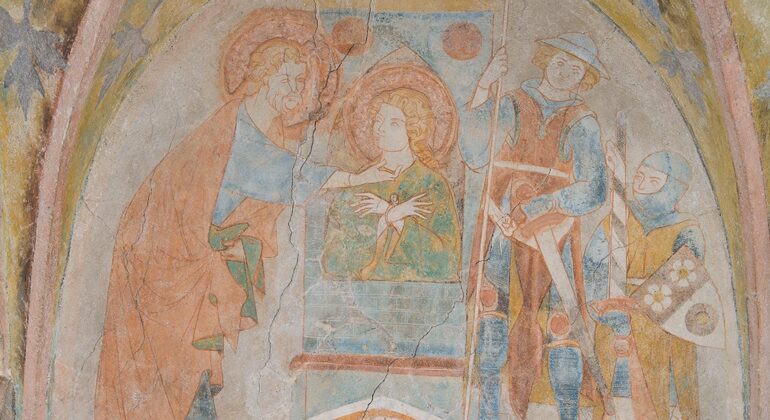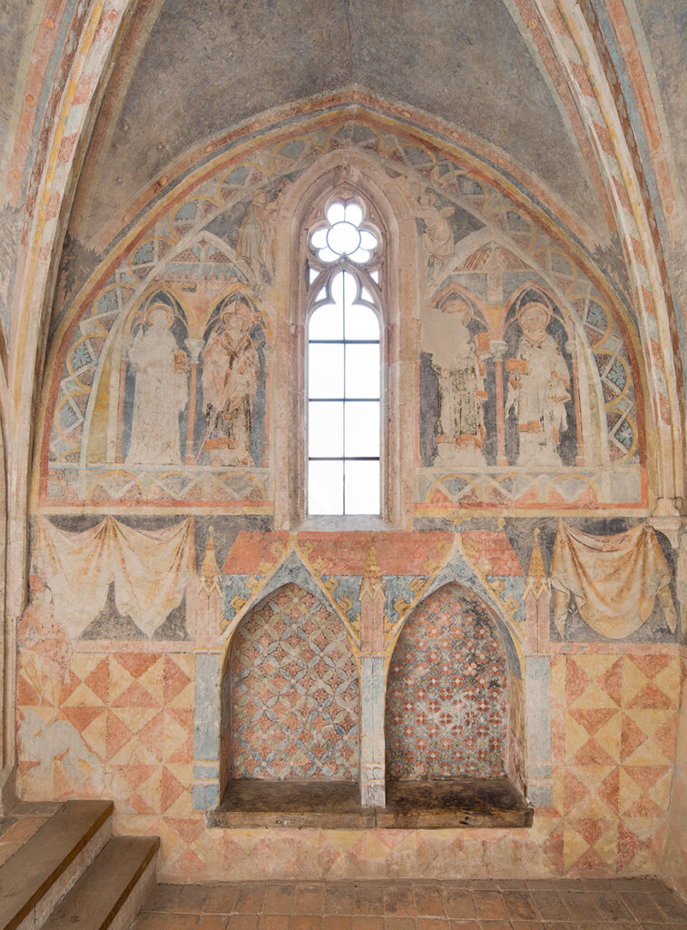 Thematisch umfasst das Ausstattungsprogramm der heute profanierten Kapelle, die ehemals so wie die Stiftskirche des Göttweiger Männerklosters dem Patrozinium Marias unterstellt war, unter anderem einen mariologischen Bildzyklus, einen Bildzyklus zur Legende des heiligen Matthias, eine Episode aus der Legende des heiligen Nikolaus und eine Darstellung des in Göttweig als Heiliger verehrten Bischofs Altmann von Passau, der das von ihm gegründete Stift der thronenden Maria mit Christus überreicht. Die Wandmalereien faszinieren durch ihre Reichhaltigkeit und hervorragende künstlerische Qualität. Neu erschienen ist nun ein Artikel von Miriam Landkammer. Ausgehend von einer Ergänzung zum Bildprogramm – die im Vorraum dargestellte Mitgiftspende des hl. Nikolaus war bislang noch nicht bestimmt – geht der Beitrag Interaktionen zwischen den Bildern und den Strukturen des architektonischen Raumes nach, die den Kapellenbesucher*innen auf dem Weg durch die drei Räume als Wahrnehmungsangebote offenstanden.